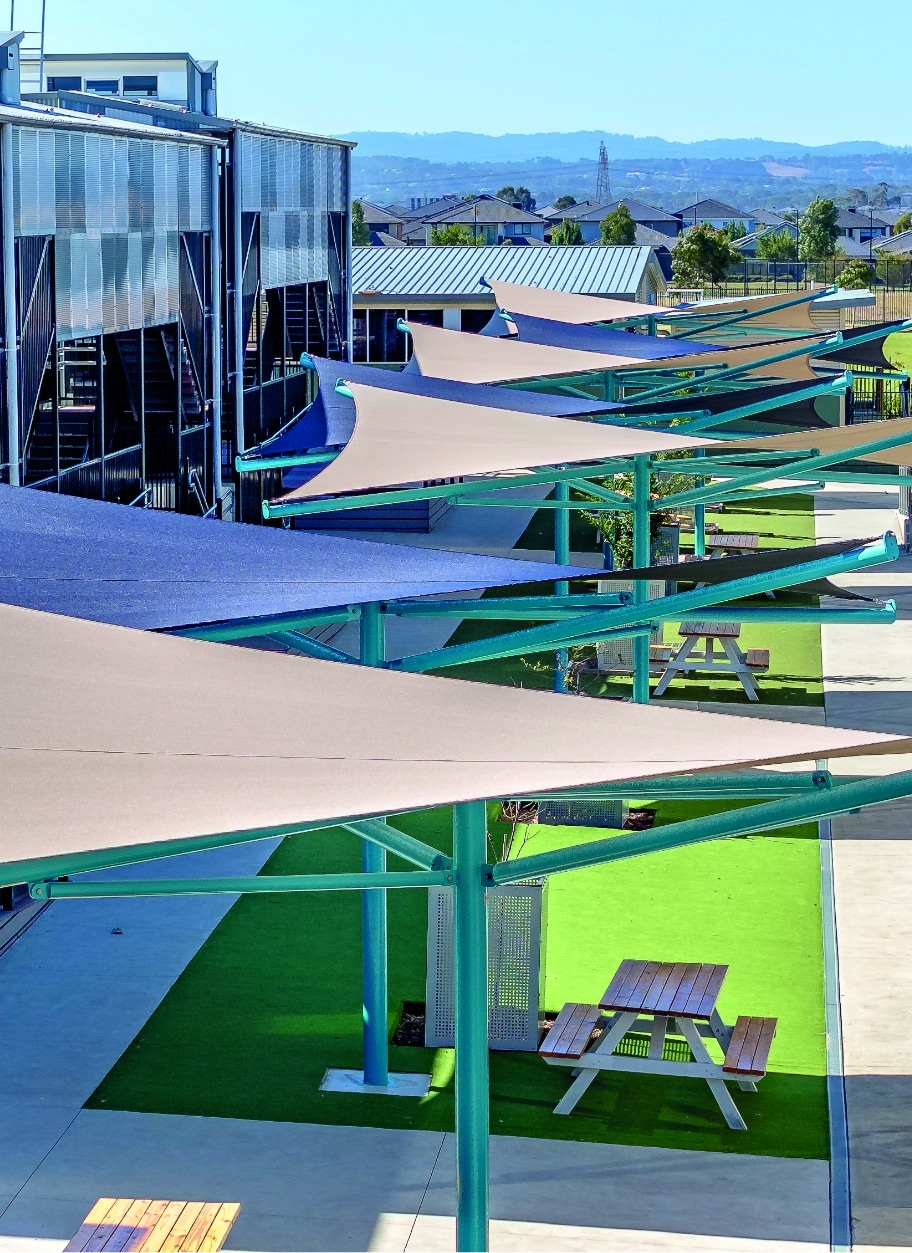Cancer Council-endorsed protection keeps students and staff safe from harmful UV rays across all outdoor spaces.